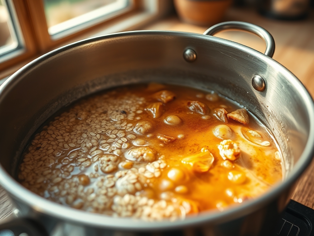 Look at the reference image above. Notice the individual definition of each oat grain; they are not lost in a sea of grey slime. If your oats look dull or grey, you likely skipped the toasting phase or used tap water with high chlorine levels. If you see "pooling" of liquid on top, the starch has not fully bound the water. Solution: Simmer uncovered for five more minutes while whisking gently to aerate the mixture. If the color is too pale, you can deglaze the bottom of the pan with a splash of apple cider to add acidity and brighten the visual palette. The final product should have a glossy sheen, indicating a successful fat to starch emulsion.