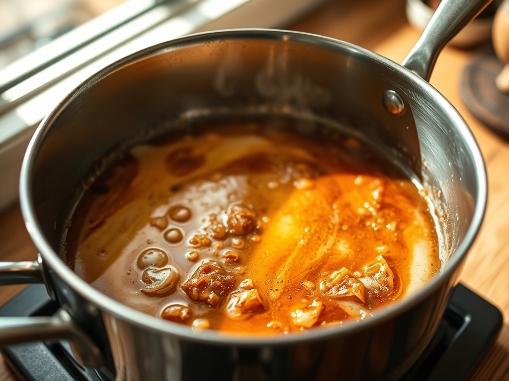 Slowly pour in 500ml of your liquid while scraping the bottom of the pan to deglaze any caramelized bits. Once a thick paste forms, add the remaining liquid and the dehydrated mushrooms. Bring the mixture to a gentle simmer, never a rolling boil.